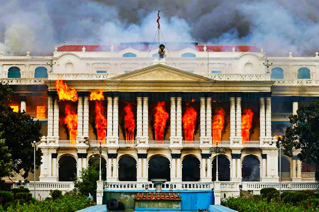 Soon Kathmandu was burning – Singha Durbar, i.e. Nepal’s administrative headquarters; the health ministry; the parliament building; the Supreme Court; the presidential palace; the prime minister’s residence, offices of the governing communist party, and the Kathmandu Hilton, were all set ablaze.